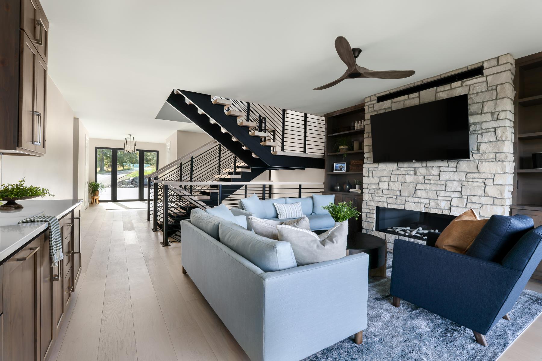 This lakefront retreat was designed as the ultimate getaway, where every detail connects comfort with craftsmanship. Smooth drywall, knockdown textures, and carefully finished millwork set the foundation, while custom paint and stained beams added depth and warmth throughout.