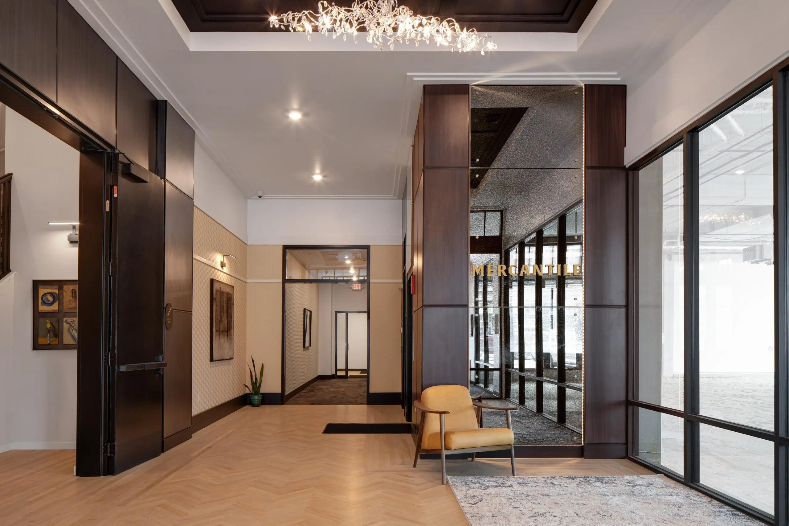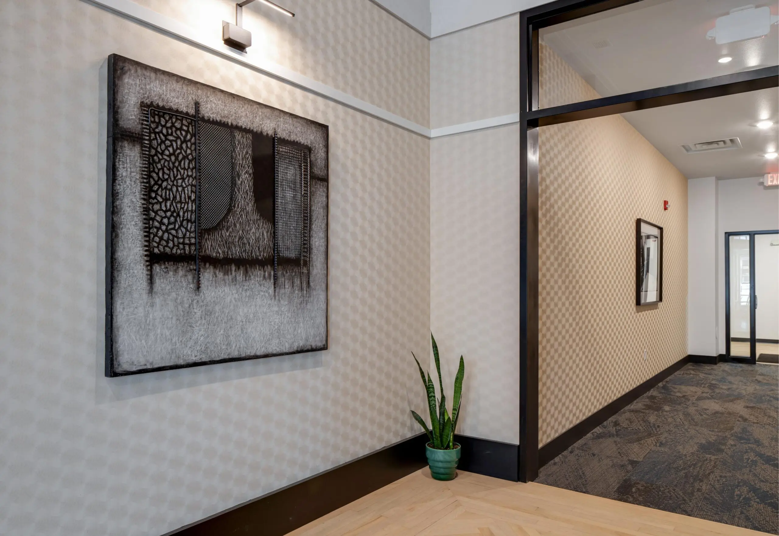 In addition to drywall and paint throughout, we completed steel stud framing for the commercial storefronts and installed high-end wallpaper in the common areas, adding texture and style that complements the modern design. The result is a property that balances durability, safety, and elegance, supporting both residential comfort and commercial activity in the heart of downtown.