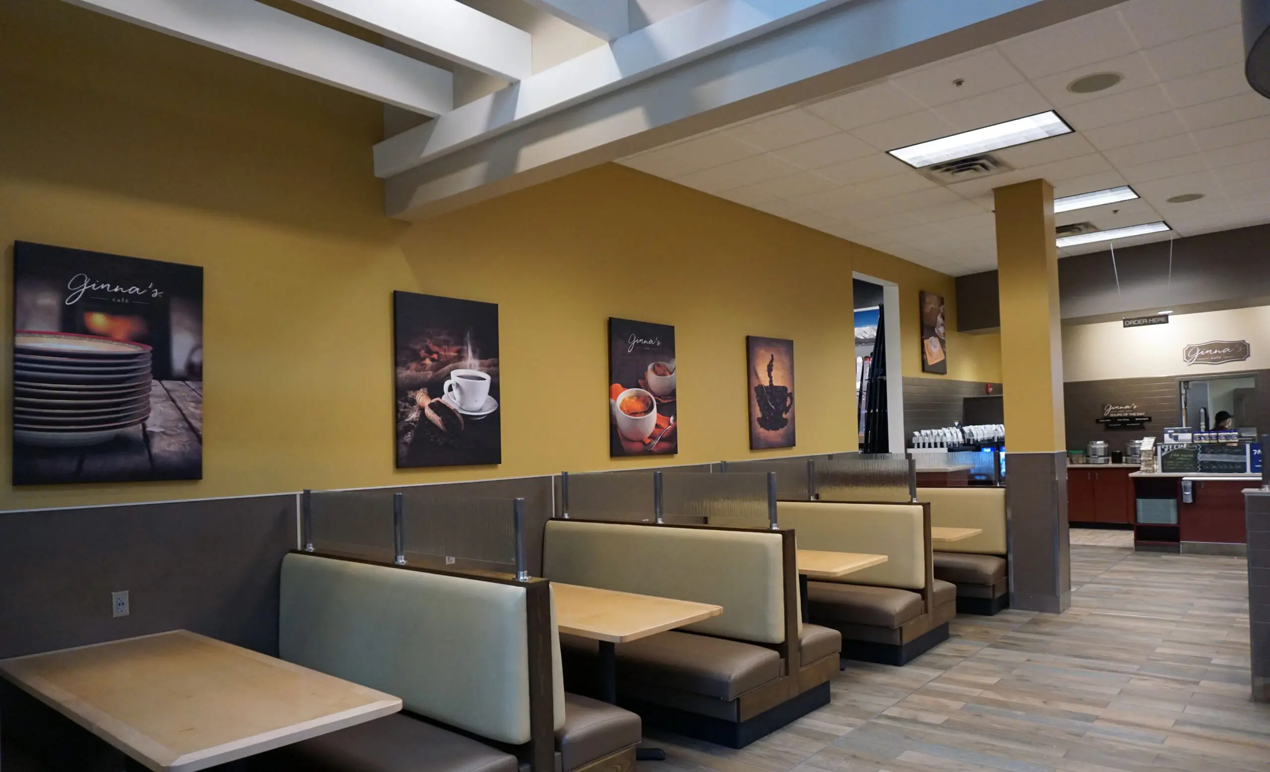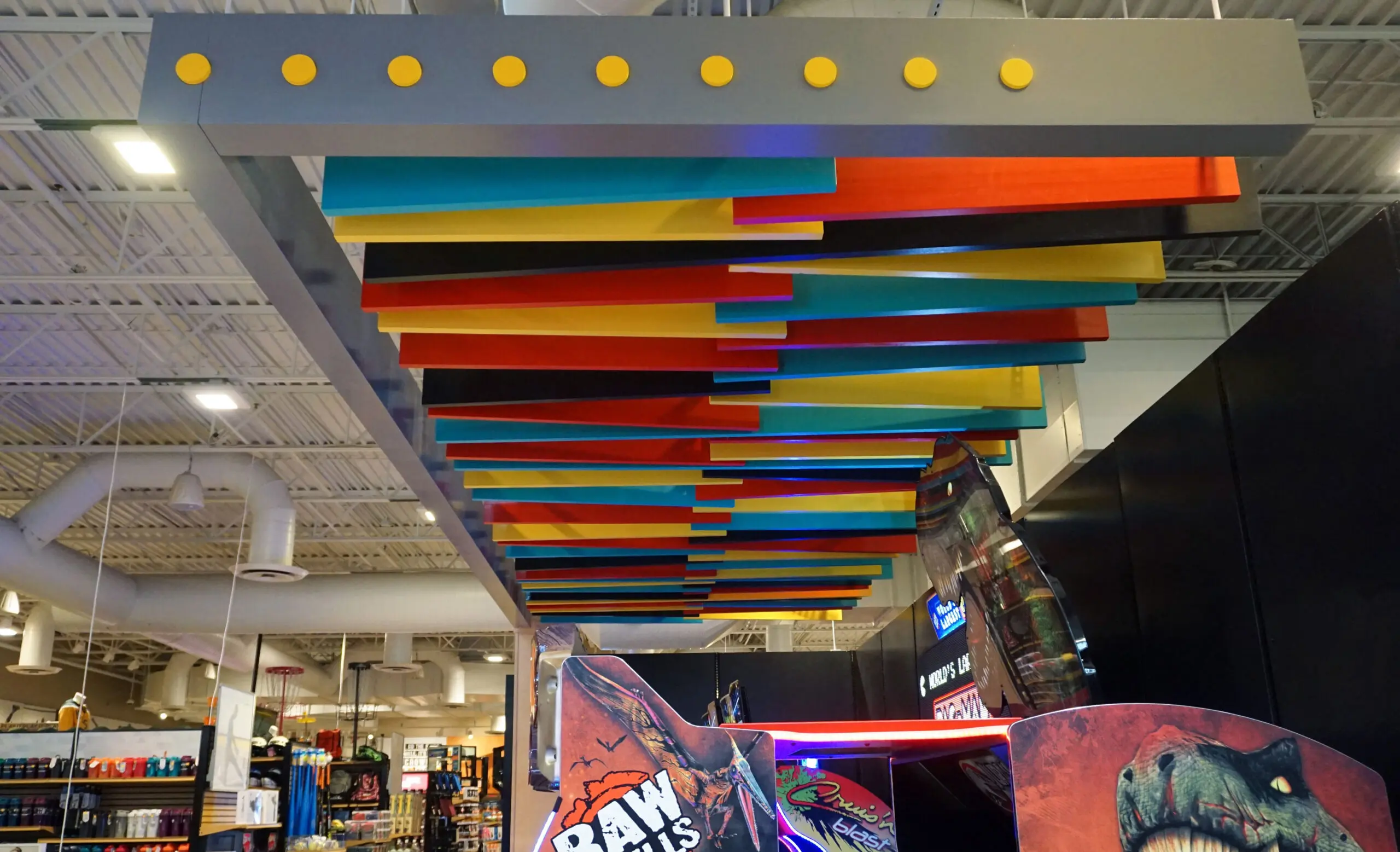 Sections were carefully isolated so work could continue without disruption. Wood clouds, bar joist ceilings, and other detailed finishes were completed with care. In the arcade, vibrant colors were custom matched and finished off-site to capture the exact tone and durability needed.